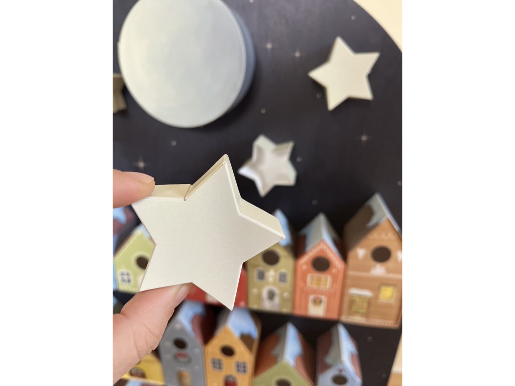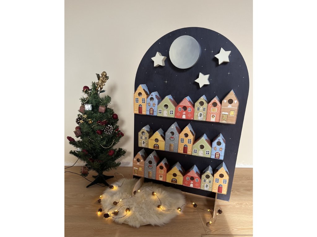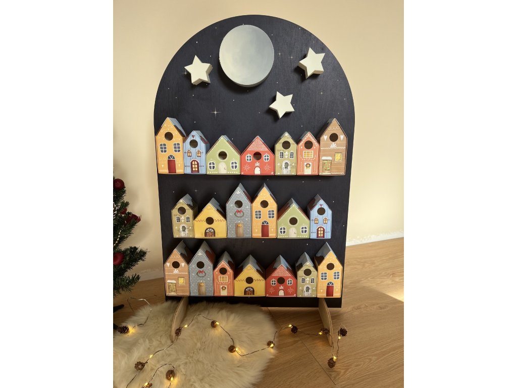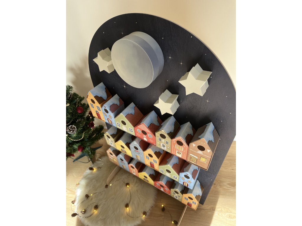 S tímto kalendářem bude čekání na Ježíška ještě kouzelnější. Noční obloha a krásné ručně malované domečky v pastelových barvách. Domečky jsou různých velikostí, abyste měli možnost zvolit i větší dobrůtku. Nebo pokud máte kalendář pro sourozence, určitě se vejdete. Uložit nějakou drobnost lze i do hvězd nebo měsíce.