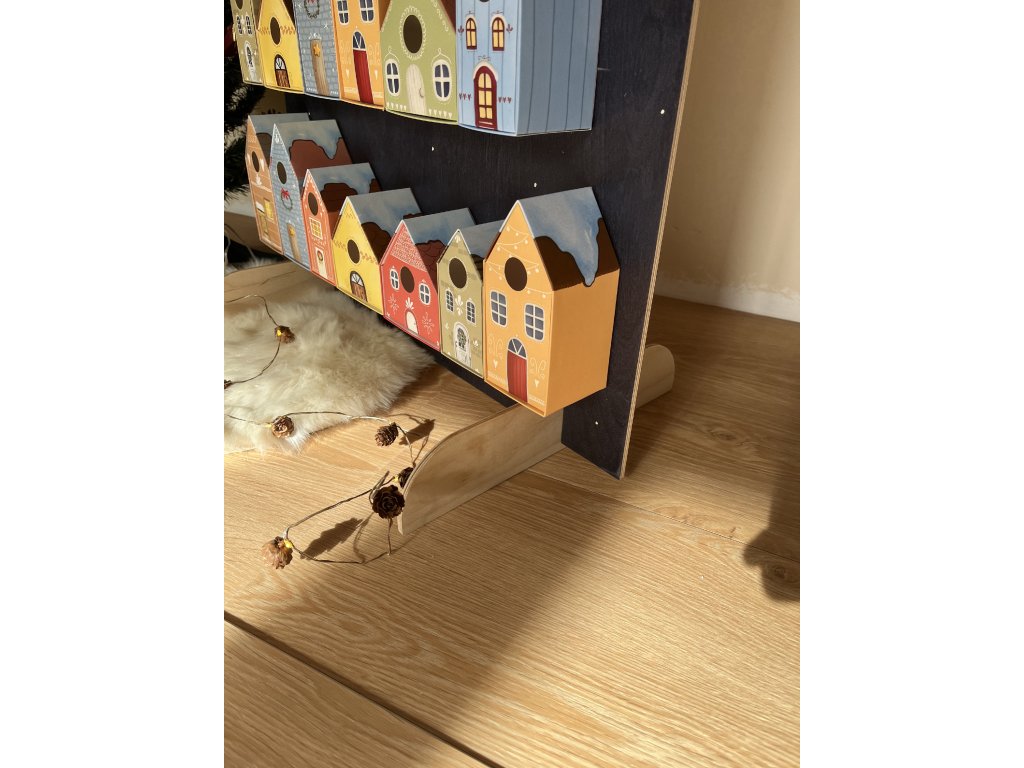 Součástí balení je stojánek na celý kalendář. Díky tomu máte možnost umístit kalendář prakticky kamkoliv. Ke každému kalendáři ještě navíc dostanete arch s čísly, tudíž si sami můžete určit pořadí domečků. Největší výhoda je, že Vám kalendář bude sloužit mnoho let.