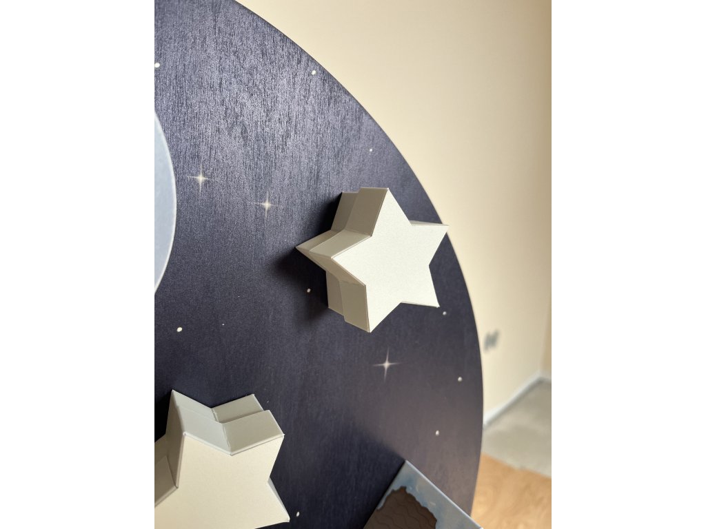Domeček, měsíc a hvězdy jsou vyrobeny z kartonu.
