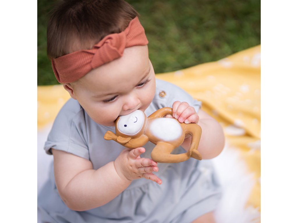 Děti mají v oblibě specifickou příjemnou vůni a chuť přírodní gumy a zaujme je i zvuk jemně znějícího chrastítka uvnitř zvířátka.