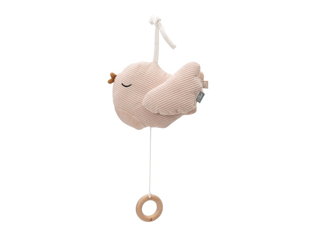 Něžný závěsný ptáček hraje po natažení za kroužek krásnou ukolébavku Franze Schuberta. Hračku s pomocí textilního úchytu snadno připevníte na postýlku, autosedačku, kočárek apod.